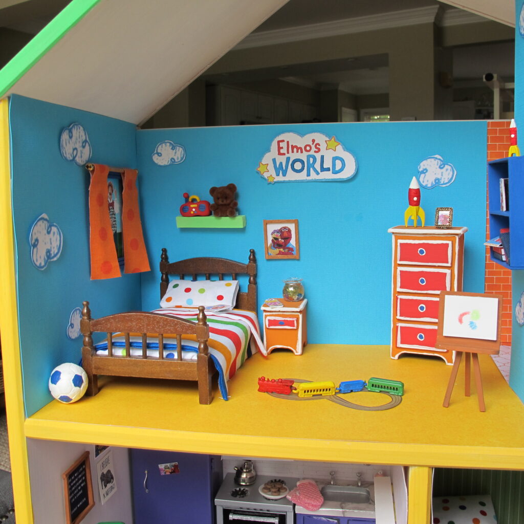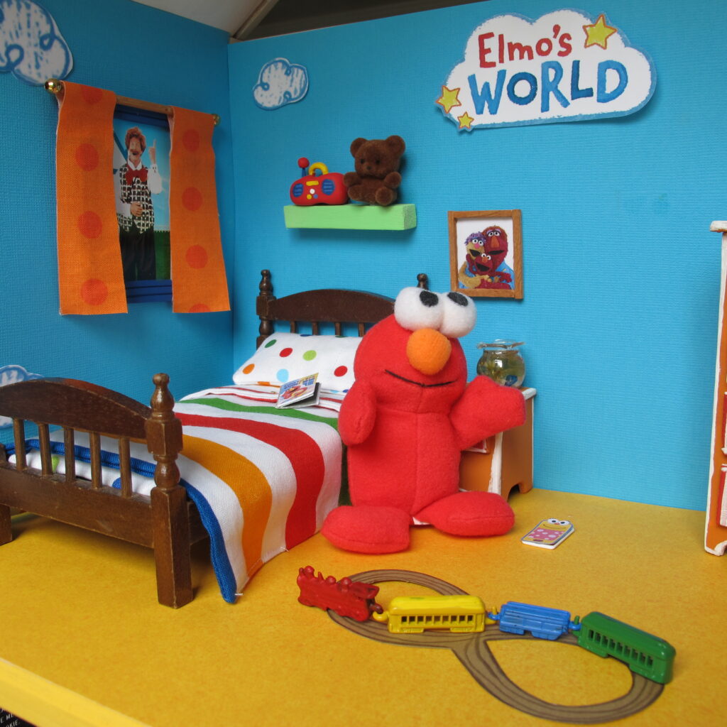 First up is Elmo’s Room, inspired by the new Elmo’s world set on Sesame Street. When I first started I didn’t realize the original set design had changed from its simple crayon drawn design. While that would have been a lot easier this was a lot more fun!