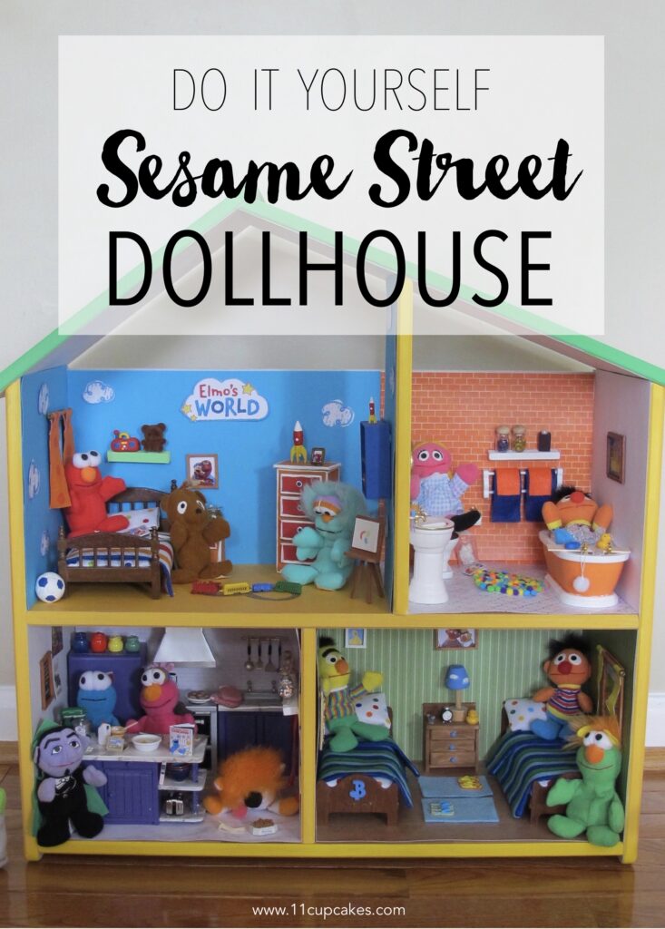 When Catherine was little I found this dollhouse bookshelf from Ikea. I thought it would be fun to start decorating a simple dollhouse for her to play with. However, once it was assembled she kept putting her little Sesame Street friends inside to take a nap. It seemed like a fun challenge so I started thinking of how to turn it into a Sesame Street dollhouse.