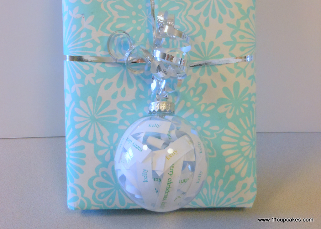 Today we've got another gift tag project to share. A glass ornament filled with paper shows who this gift is for. This project was simple to make.