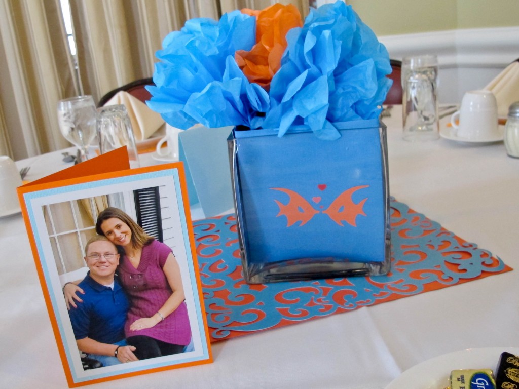 This party was a lot of fun to decorate for. The groom's favorite color is orange (go Texas!) and so we used orange and blue as