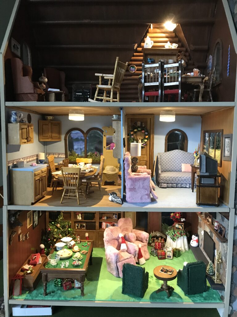 The remodel started when my family got stuck at my parents during the stay-at-home orders, and when it looked like we would be there a while, I dusted off the old dollhouse to create something new. The original plan was to make it look more modern. Then, I got the idea to make it a miniature version of my favorite place on earth. Although it only stands 3 feet tall, it is full of tiny details and some of my favorite childhood memories.