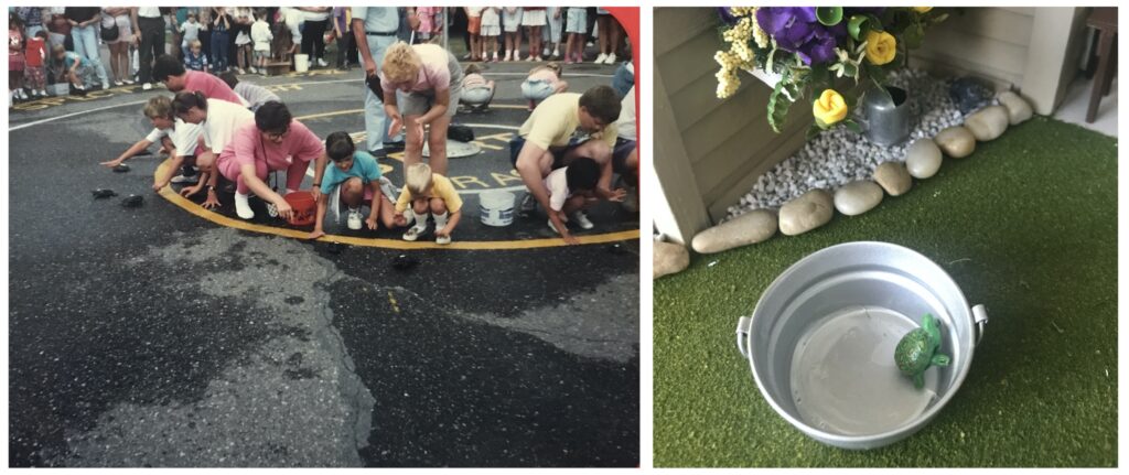 Turtle races were a family tradition every summer. We always tried to catch our own turtle in the lake and kept him outside in a metal tub until race day.