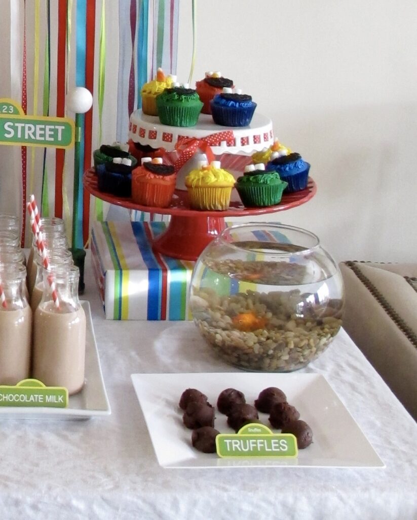 Elmo’s goldfish, Dorothy, even made a special appearance at the party! The kids had so much fun “talking” to her and chatting with Elmo throughout the celebration, which made the whole day feel extra magical and interactive. Little details like that really helped bring the theme to life and kept the kids engaged from start to finish.