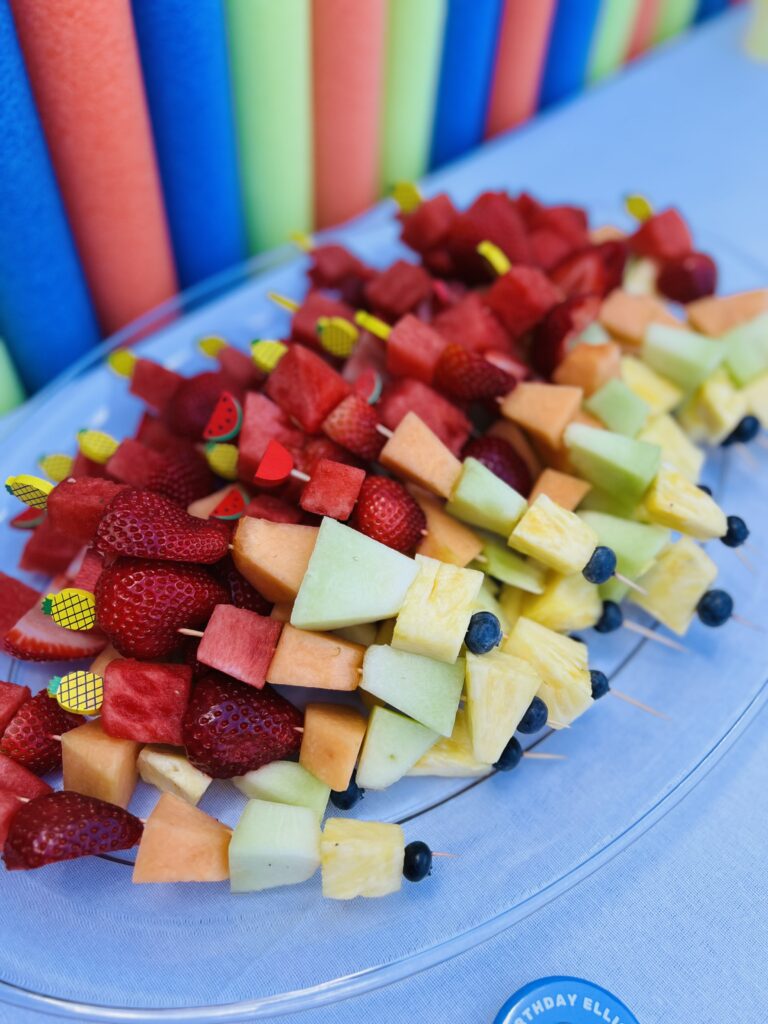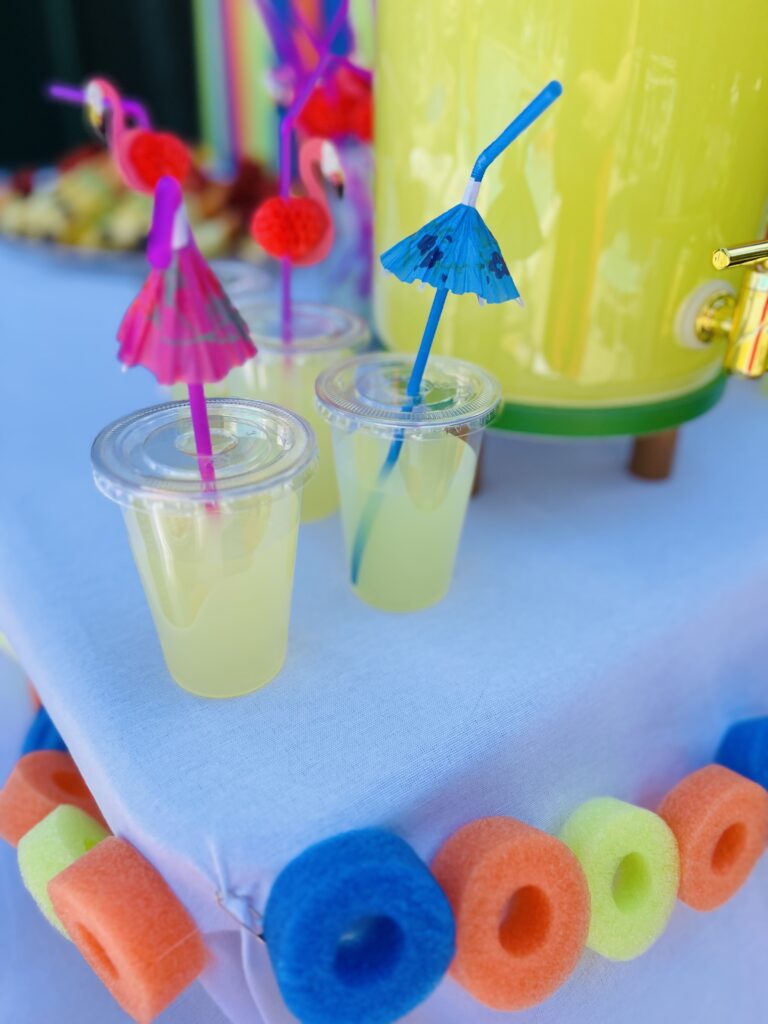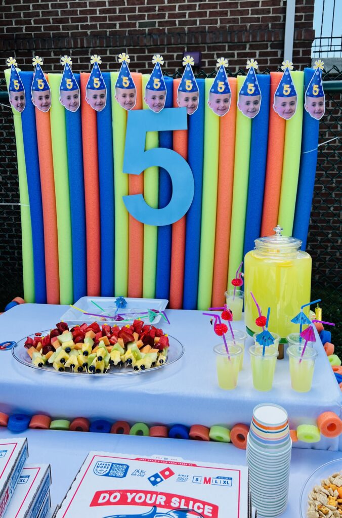 We kept decorations playful and low-key—colorful pool noodles lined the fence and added a pop of color without much effort. Plenty of fun food and cold drinks kept kids and adults happy (pizza, fruit kabobs, popsicles, and lemonade were a big hit).