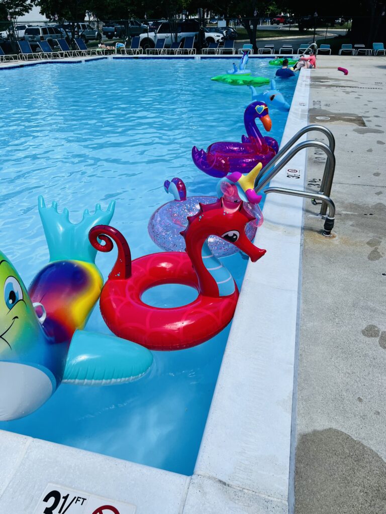 We brought 12 big inflatable pool floats and threw them into the pool. That’s it. And it was game-changing.