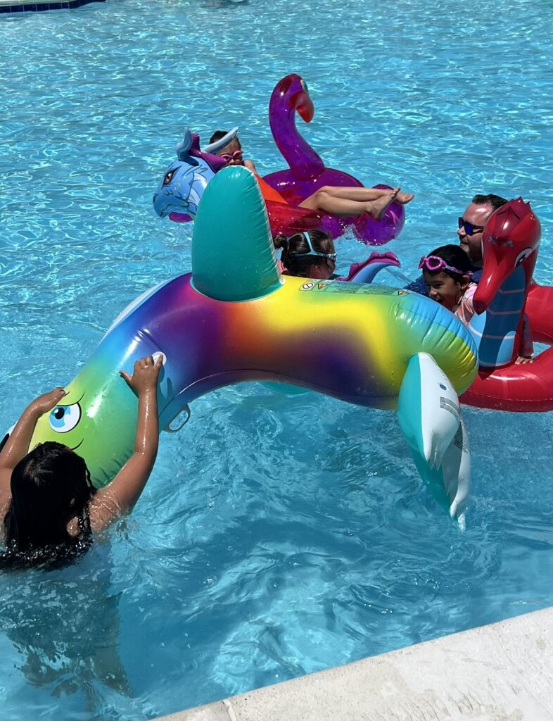 Suddenly, the entire pool became a floating playground — kids climbed, raced, bounced, and giggled for hours. The floats gave everyone something to do, sparked imaginative games, and made the whole afternoon feel like a mini water park.