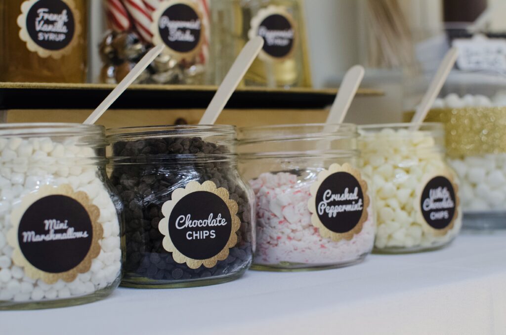 I love food and drink bars like this to get guests mingling and interacting. How fun to sip on hot chocolate!
